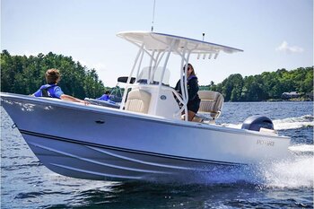 Additional Options Premium Color Gelcoats - Full Hull or Two Tone Chine or Boot Stripe Premium Color Upgrade Upholstery Accent Piping Color Upgrade - Grey or Navy Convertible Top & Enclosure with Stainless Steel Tubular Frame Stainless Steel Bimini Top Stainless Steel Bimini Top & Enclosure Cockpit Cover Garmin Airmar B75M Thru-Hull Transducer Garmin VHF 315 Marine Radio + 4' Antenna Classic MFD Integrated Fusion Audio System with XS Series Speakers (4) & Wireless Remote Premium MFD Integrated Fusion Audio System with Signature Series Speakers (4), Amp & Wireless Remote Stainless Steel Anchor Roller Removable Fiberglass Cockpit Table with Faux Teak Inlay Stainless Steel Molded Come On Board Handle with Dedicated Deck Receiver Electric Trim Tabs with LED Indicator Underwater Lights - Lumitec Seablaze X2 LED White/Blue, Bronze Raw Water Washdown Pressurized Fresh Water Shower Ski Pylon Docking Lights Portside Windshield Wiper Gunwale Mounted Rod Holders (2) Stainless Steel Bow Rail Transom Mounted Flag Pole with Stainless Steel Deck Receiver Teak Package includes Teak Coaming Box Shelving & Louvered Bifold Access Door Limestone Branded Stainless Steel Fender Cleats (4) - Stern (2), Midship (2) Full Faux Teak SeaDek Package