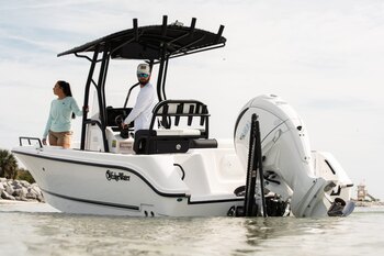 Tackle the toughest conditions, dive the reefs, or cruise the harbor. The 208CC features an expansive cockpit and a large walk-in console with a portable head. Gunwale rod racks, rod holders and several options for livewells maximize every inch of usable space in this center console.