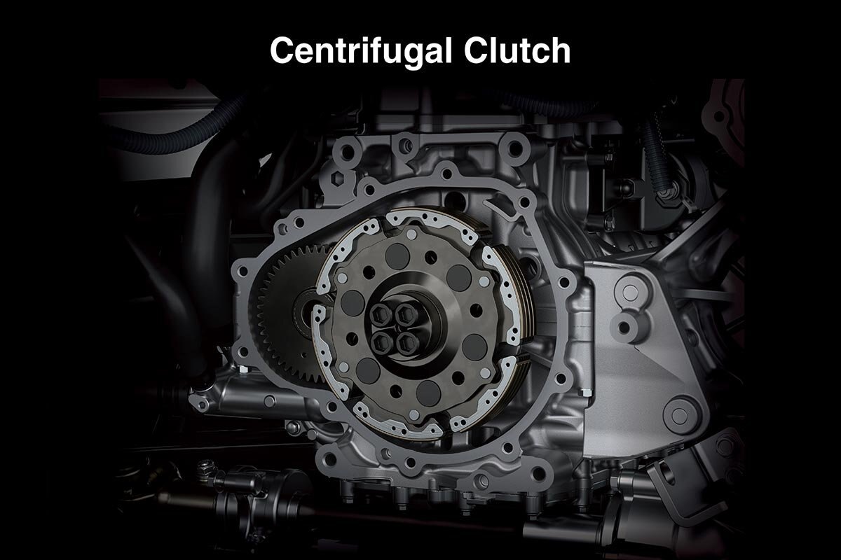• Large-volume Continuously Variable Transmission (CVT) with centrifugal clutch and high-quality belt